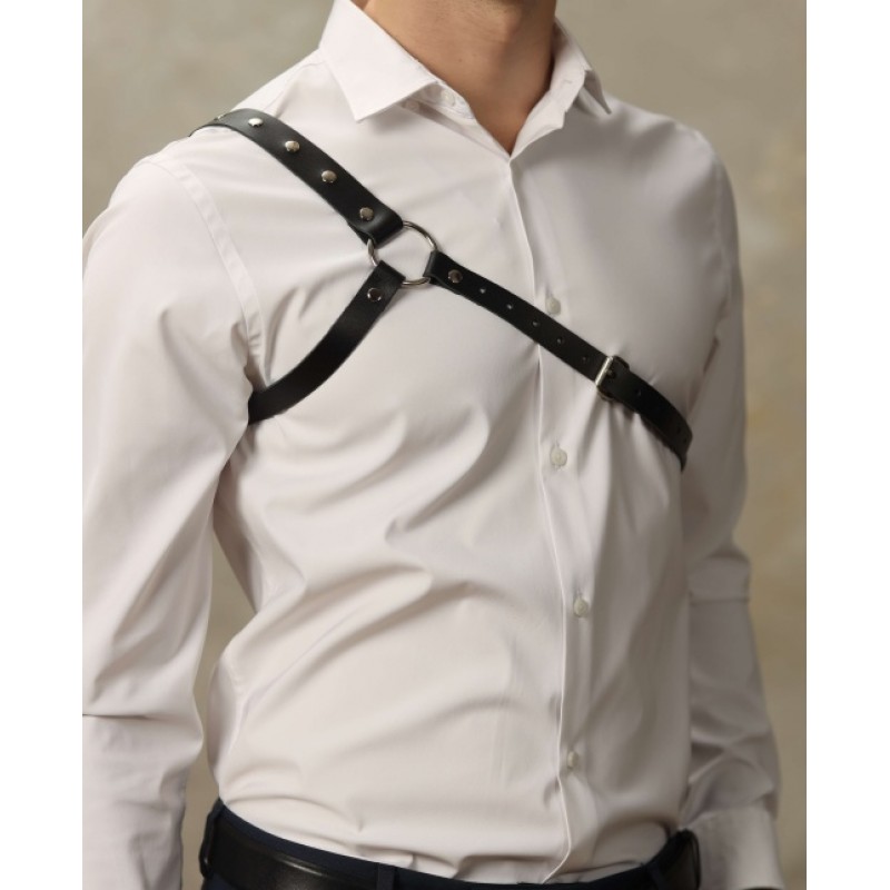 Классическая мужская БДСМ сбруя через одно плечо, выполненная полностью из