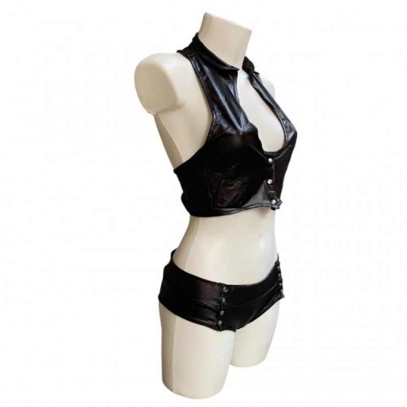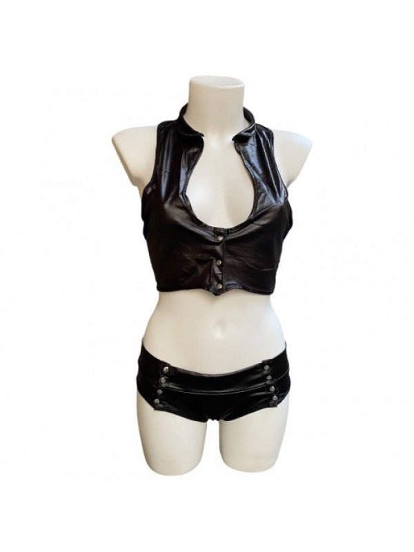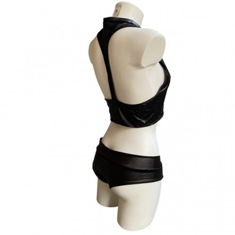 Сексуальный укороченный топ и короткие трусики-шортики в черном цвете станут отличным подарком для девушек, которые всегда желают выглядеть идеально!Материал "под кожу" чувственно облегает тело, подчеркивая его роскошные изгибы.