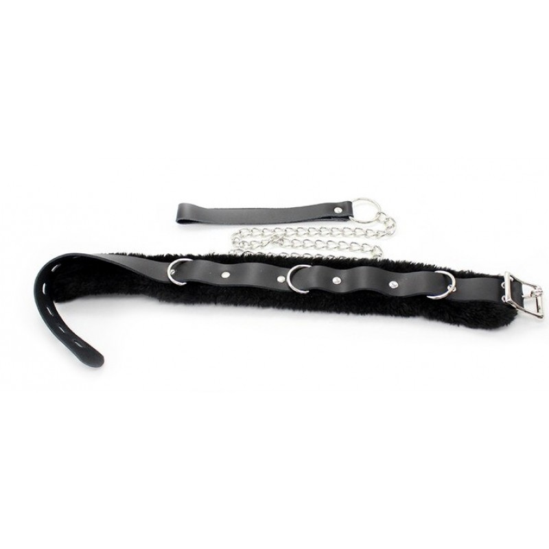 Черный ошейник с мехом на поводке код 262401052