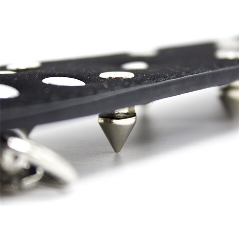 Размер: длина ошейника 45 см, ширина 5 см, длина шипов - 1 см, длина поводка с петлей 74 см