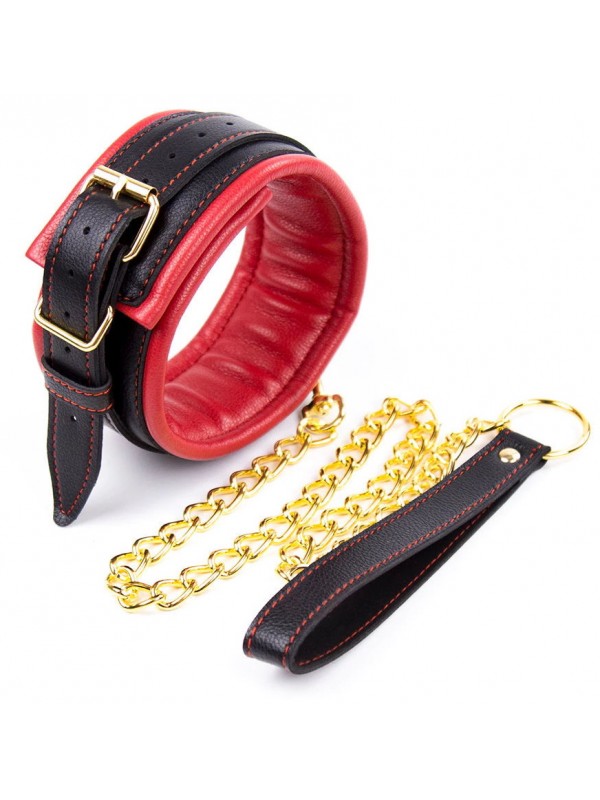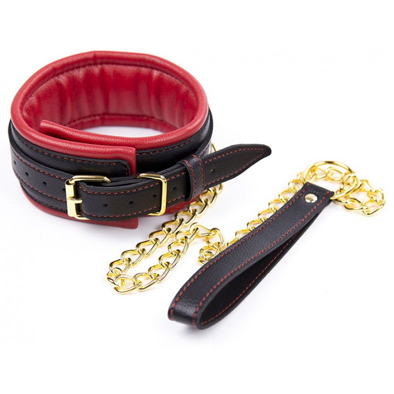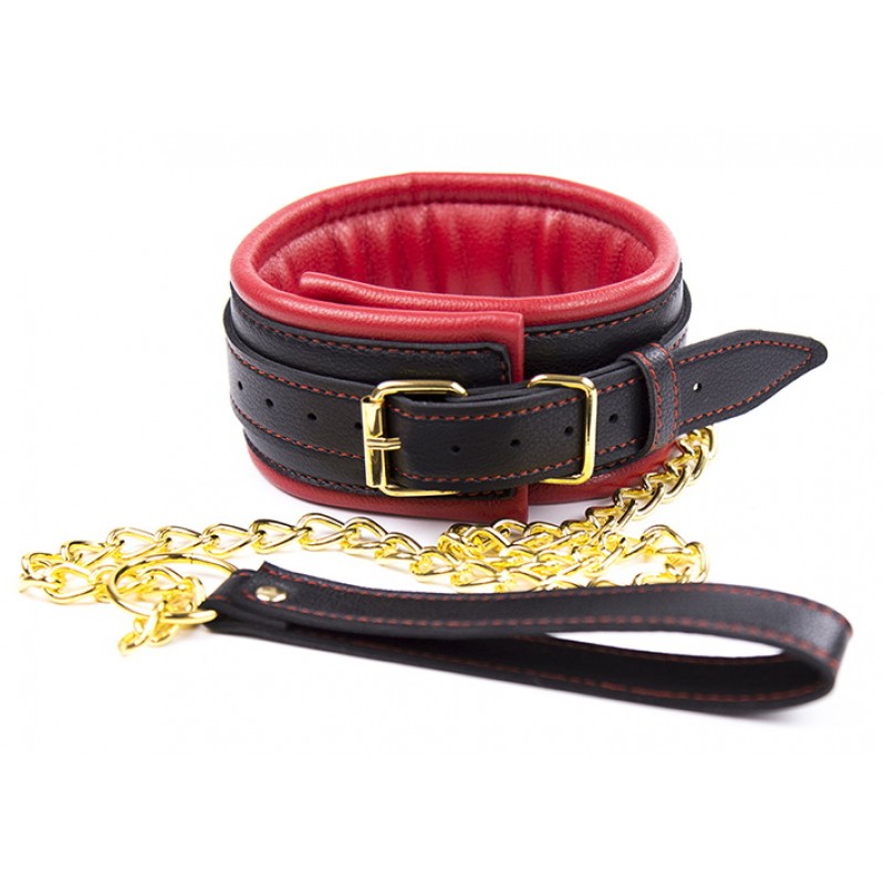 Мягкий чёрно-красный ошейник с поводком код 263202083