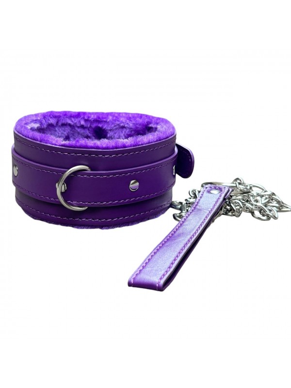 Мягкий ошейник с поводком на цепочке фиолетовый код 261800094