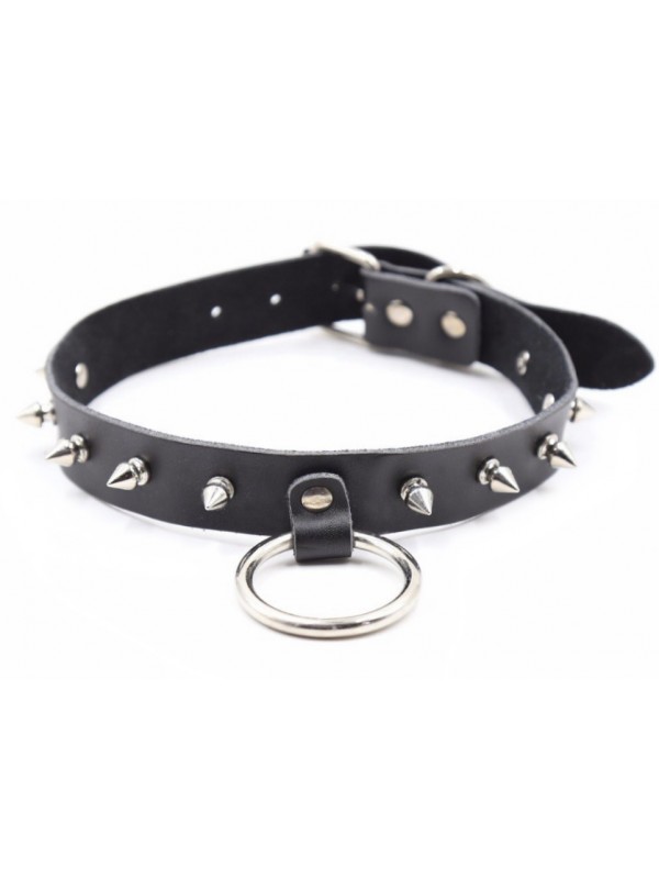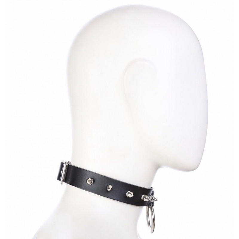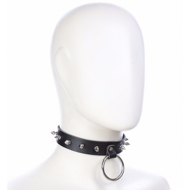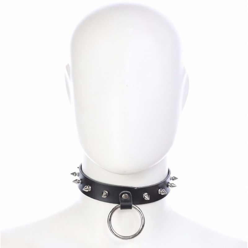Ошейник из натуральной кожи с шипами и кольцом код 262400118