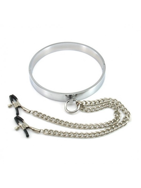 Ошейник стальной с зажимами для сосков код 262403063