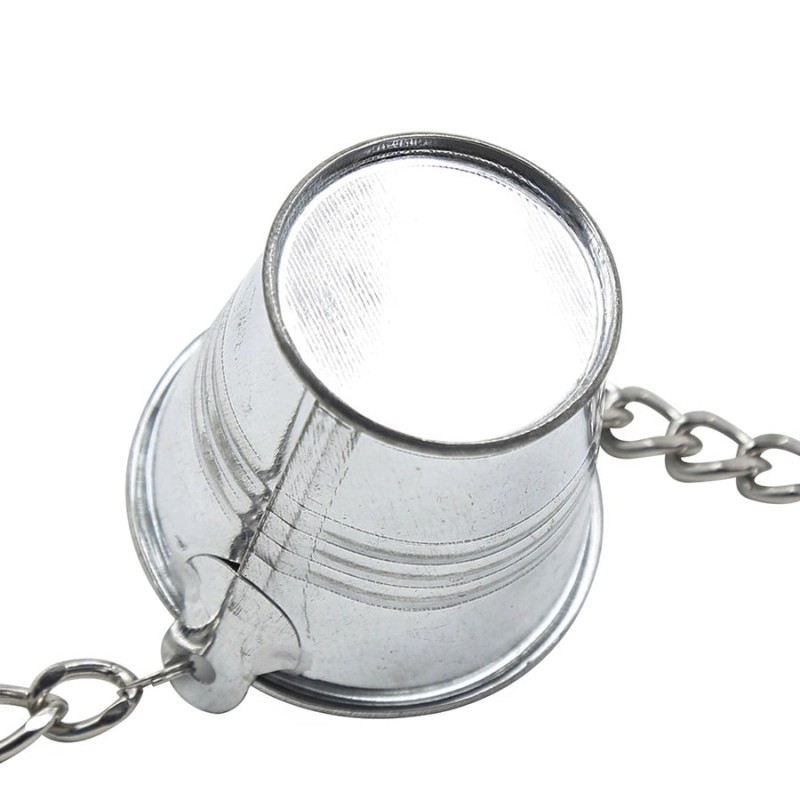 Размер: длина ведерка 5 см, ширина 5,5 см; общая длина зажима 9 см; длина цепи от ведерка до зажима 11 см