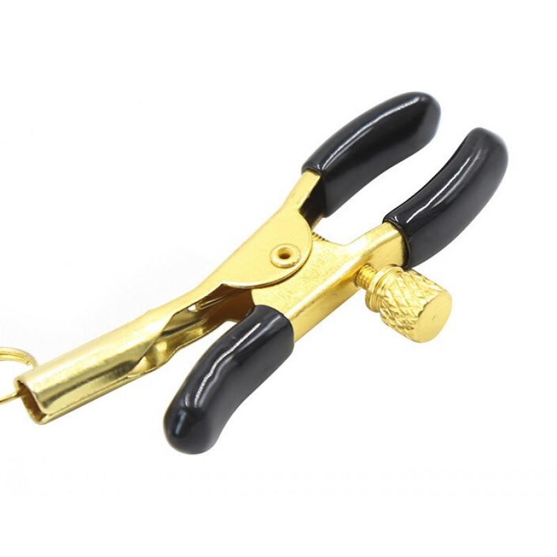 Сила сжатия сосков регулируется металлическими винтами, а окончания зажимов покрыты резиновыми подкладками - это позволит не повредить нежную кожу груди.Размер: общая длина 11 см
