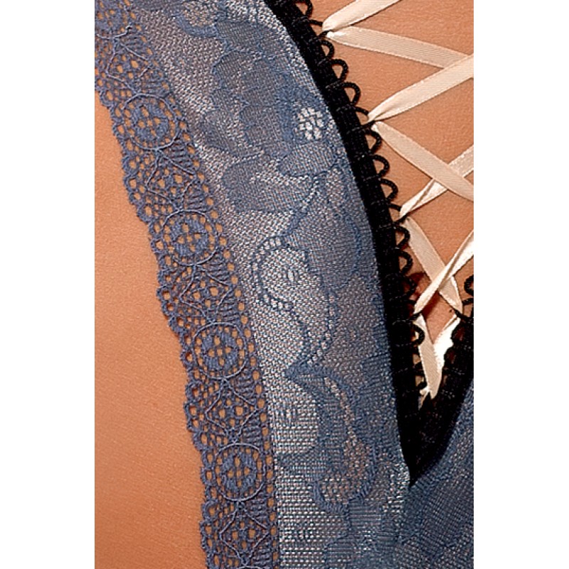 Кричащее и дразнящее боди выполнено из шикарного цельного кружева благородного серого цвета!Покрой боди изумительно подчеркивает черная окантовка и корсетная шнуровка, нежного молочного цвета.