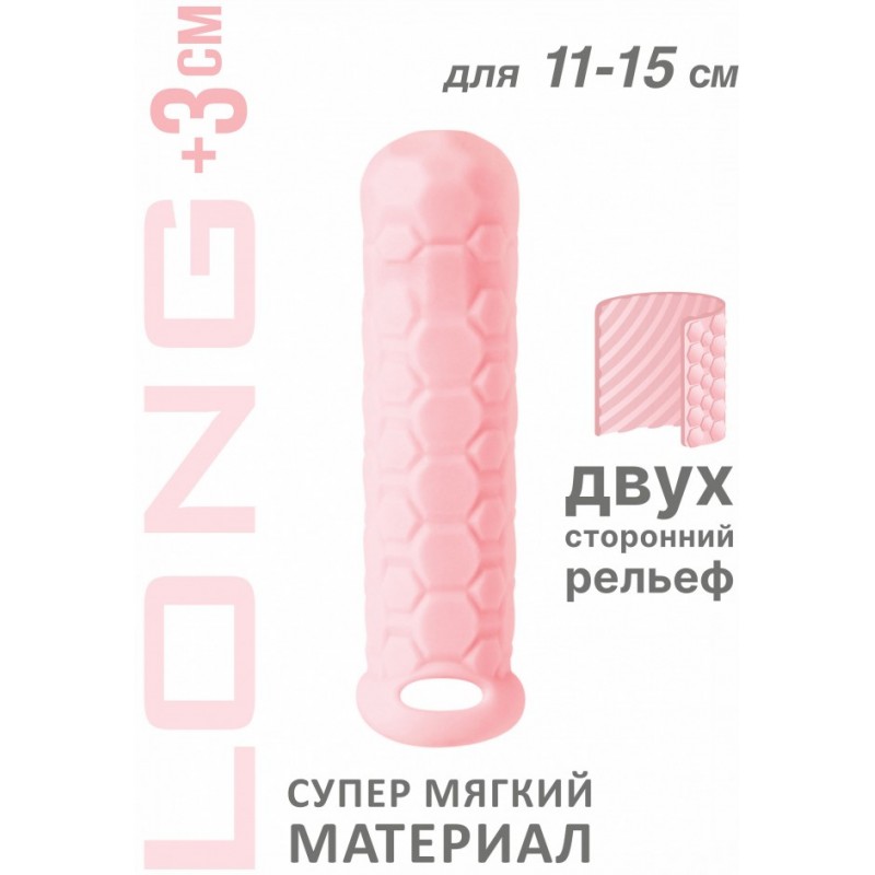 Благодаря двухстороннему рельефу насадки, Вы и Ваш партнер ощутите дополнительную стимуляцию во время полового акта и испытаете новые, незабываемые ощущения.Насадка «Long» подарит Вам тесный контакт и яркие ощущения, увеличив длину члена на 3 см.