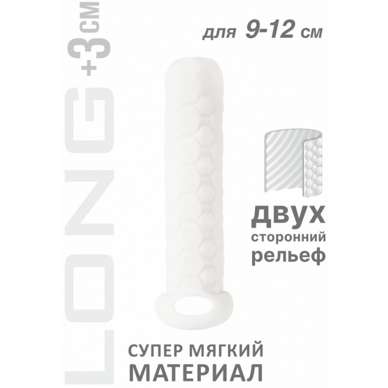 Благодаря двухстороннему рельефу насадки, Вы и Ваш партнер ощутите дополнительную стимуляцию во время полового акта и испытаете новые, незабываемые ощущения.Насадка «Long» подарит Вам тесный контакт и яркие ощущения, увеличив длину члена на 3 см.