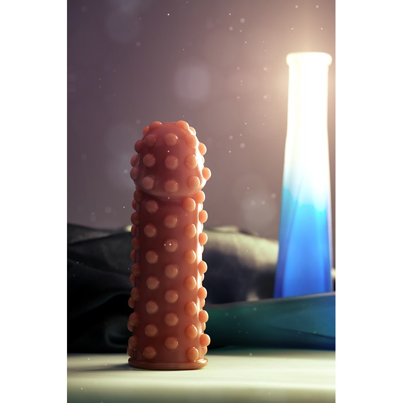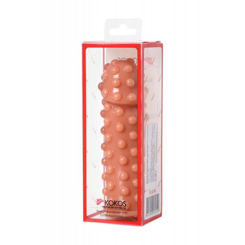 Насадка KOKOS с дополнительной стимуляцией, реалистичная,TPR, телесный, 14.7 см с шариками на стволе код ES.02-M