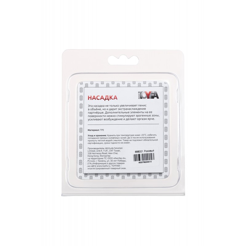 Насадка рельефная TOYFA, TPE, розовый, 5 см код 888001