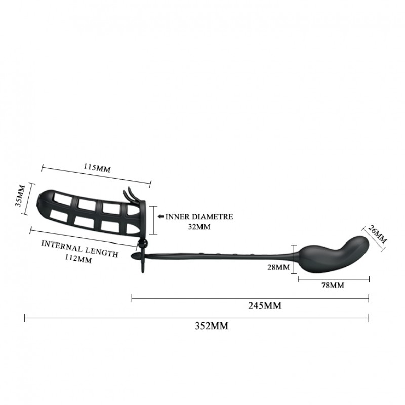 Пробка с кольцом и насадка соединяются и разъединяются между собой при помощи специального механизма.Сама насадка на половой член выполнена из бархатистого и приятного на ощупь медицинского силикона в виде паутинки.