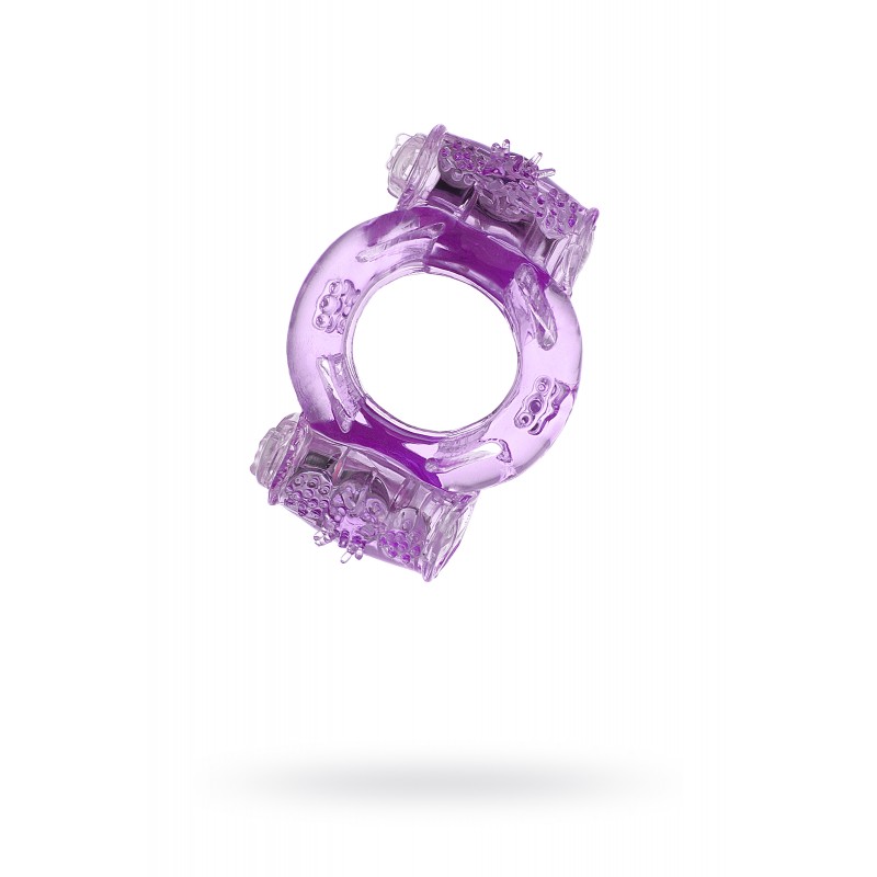 Эрекционное кольцо на пенис с двойной вибрациейTOYFA, TPE, фиолетовый код 818033-4