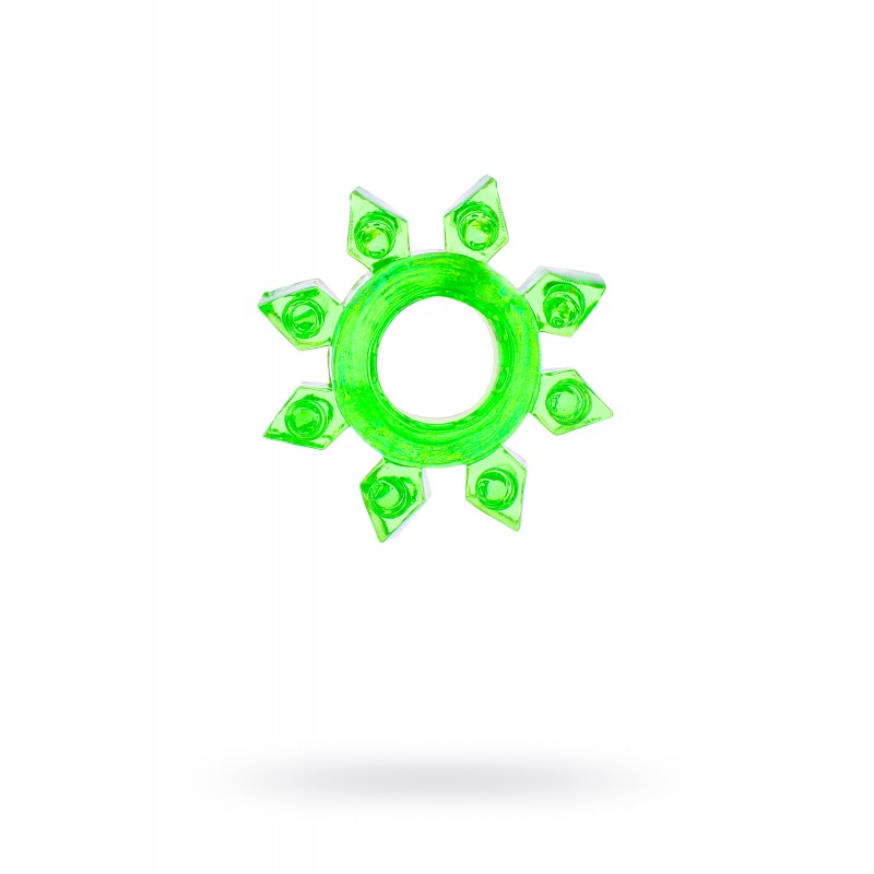 Тянущееся кольцо из зелееной эластичной термопластичной резины на пенис со стимулирующими элементами для обоих партнеров.