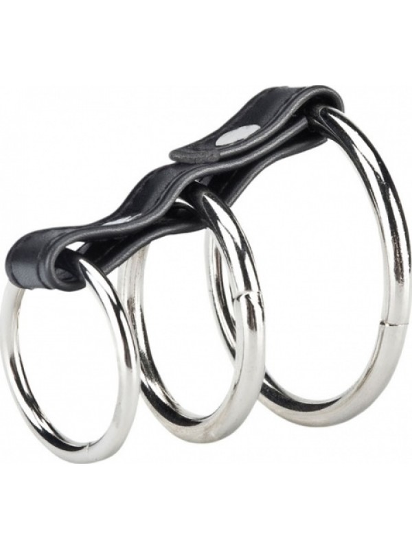 Данный хомут способствует увеличению пульсации и притока крови к пенису, а также его набуханию.Наибольшее кольцо фиксирует мошонку и основание пениса, два кольца поменьше надеваются на ствол пениса.Кольца скреплены ремешком из натуральной кожи с металлическими клепками.Размер: диаметр колец 5 см, 3,8 см и 3,8 см