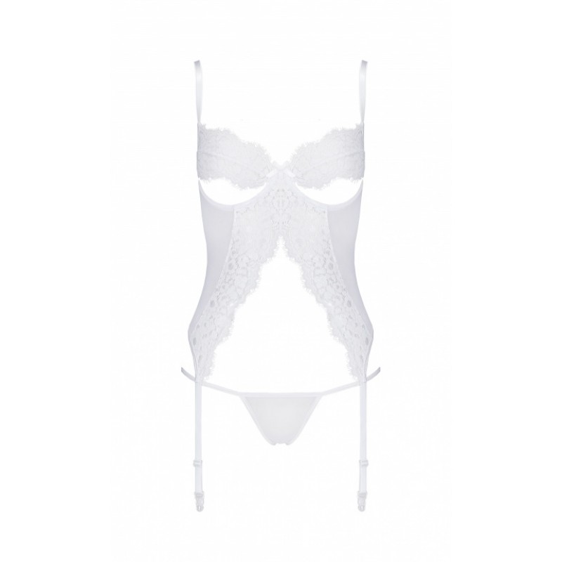 Очаровательный корсет Silentia с подвязками для чулок. Лиф с полуоткрытыми чашками на косточках!Бретели и подвязки регулируются по длине. Изделие декорировано эффектным цветочным кружевом.