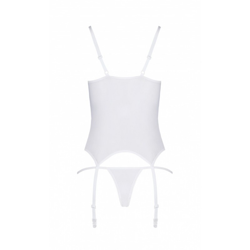 В комплект к корсету идут трусики-стринги. Чулки в комплект не входят.