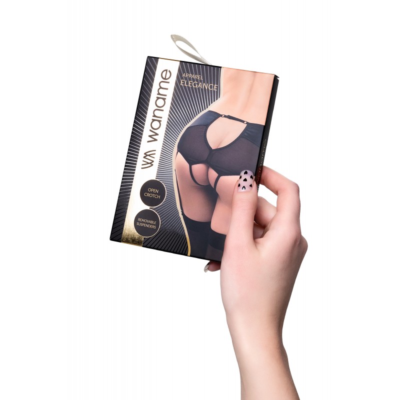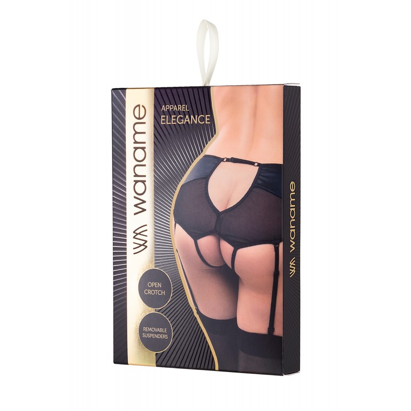 Линия провокационного эротического белья WANAME® Apparel – для женщин, которые хотят наслаждения и не скрывают этого. Эротические трусики-пояс для чулок «Э́лэгэнс» (англ. Elegance – «Элегантность») из тонкой прозрачной эластичной сетки и стрейч-сатина облегают бедра, ощущаются невесомыми, не сковывают движений, но визуально меняют силуэт. Шелковистая поверхность материала дарит приятные ощущения при прикосновении. Современные элементы дизайна тешат женское самолюбие. Трусики с высокой талией зрительно удлиняют ноги, подчеркивают сексуальный переход от талии к бедрам. Непрозрачные вставки скрадывают объем в области бедер. Швы, вытачки и регулировка по талии создают силуэтную посадку. Съемные регулируемые пажи, открытая зона копчика и эротический доступ подчеркивают чувственный образ. Модели белья Waname® Apparel эксклюзивны, разработаны и произведены в России с учетом предпочтений российских покупательниц. *Чулки в комплект не входят. На фото и видео трусики-пояс Waname® Elegance дополнены браллетом Waname® Delicacy.