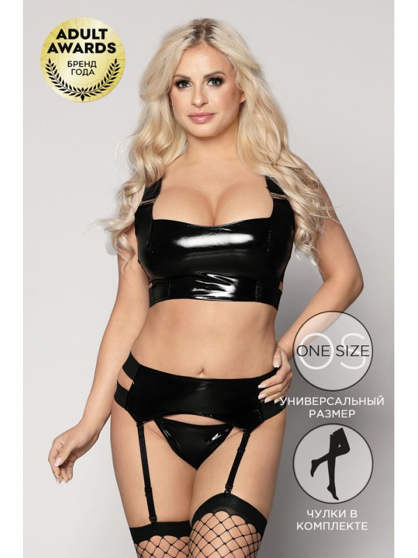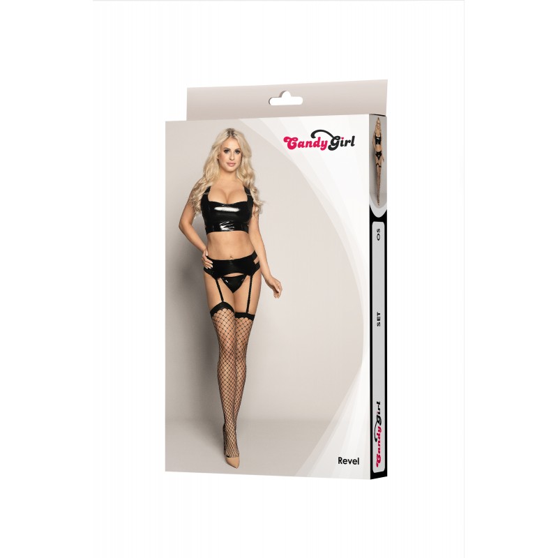 Комплект Candy Girl Revel (топ, пояс для чулок, стринги, чулки) черный, OS код 840083