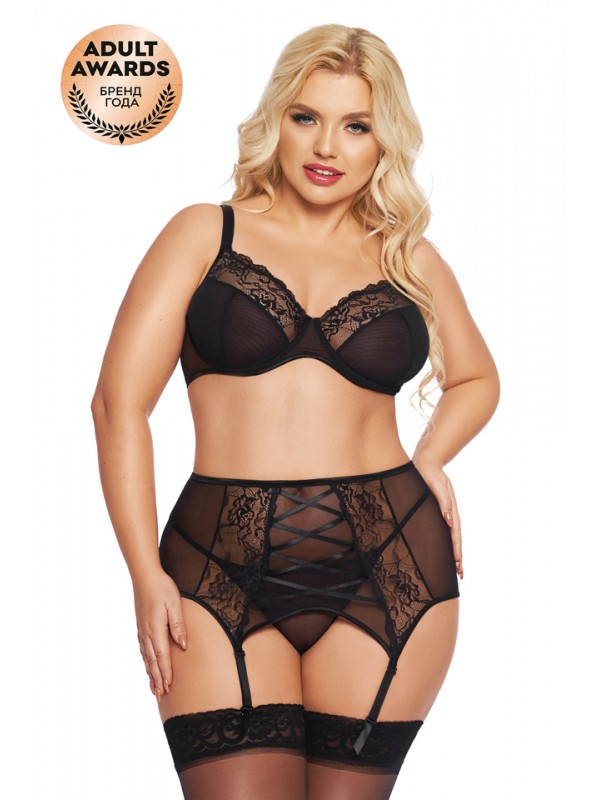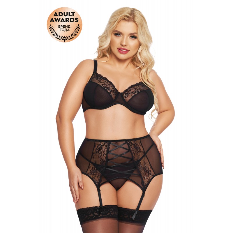 Комплект SoftLine Collection Dolores (бюстгальтер, стринги и пояс для чулок), черный, XXL код 189319