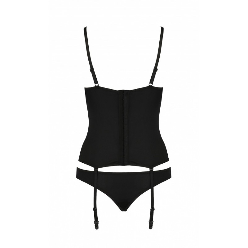 Ослепительная ткань и ажурное кружево превосходно сочетаются в корсете Tonya!Эротический корсет с подвязками для чулок черного цвета с вышитым кружевом и стринги.