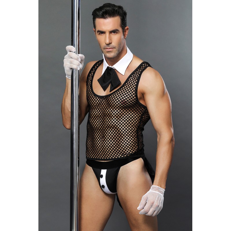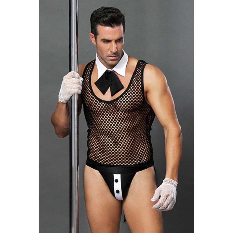 Трусы-джоки (с открытыми ягодицами) и откидывающимися фалдами на широких эластичных резинках делают образ незабываемым.