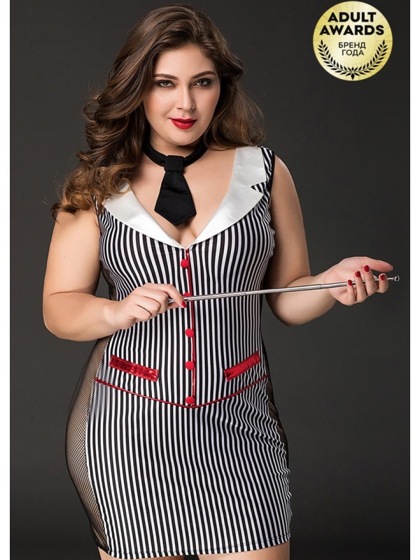 Костюм учительницы Candy Girl Tara (платье, стринги, галстук, указка) черно-белый, 2XL код 841066-BLK-2XL