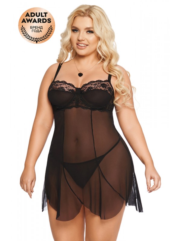 Ночная сорочка и стринги SoftLine Collection Carla, черный, XXL код 189519