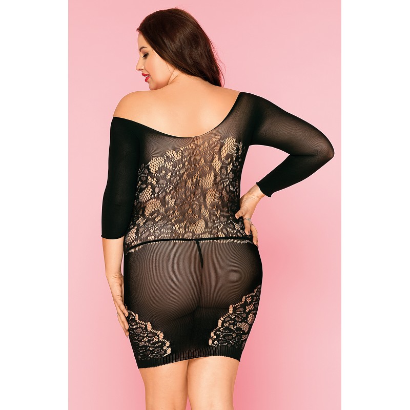 Эластичное бесшовное платье с рукавами 3/4 из сетки Candy Girl® Merimba можно носить, открывая плечи или запястья. Крупное плетение демонстрирует зону декольте, переходя в ажурное плетение на талии и бедрах. Стринги в комплекте.