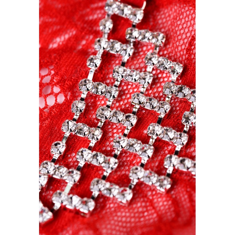 Полупрозрачное цветочное кружево впереди подчеркнет эротический настрой. Тонкие, мягкие лямочки и хлопковая ластовица обеспечат комфортные ощущения. Главный сюрприз - треугольная сеточка из страз на попе. Оригинальное колье, которое подчеркивает формы ваших ягодиц.