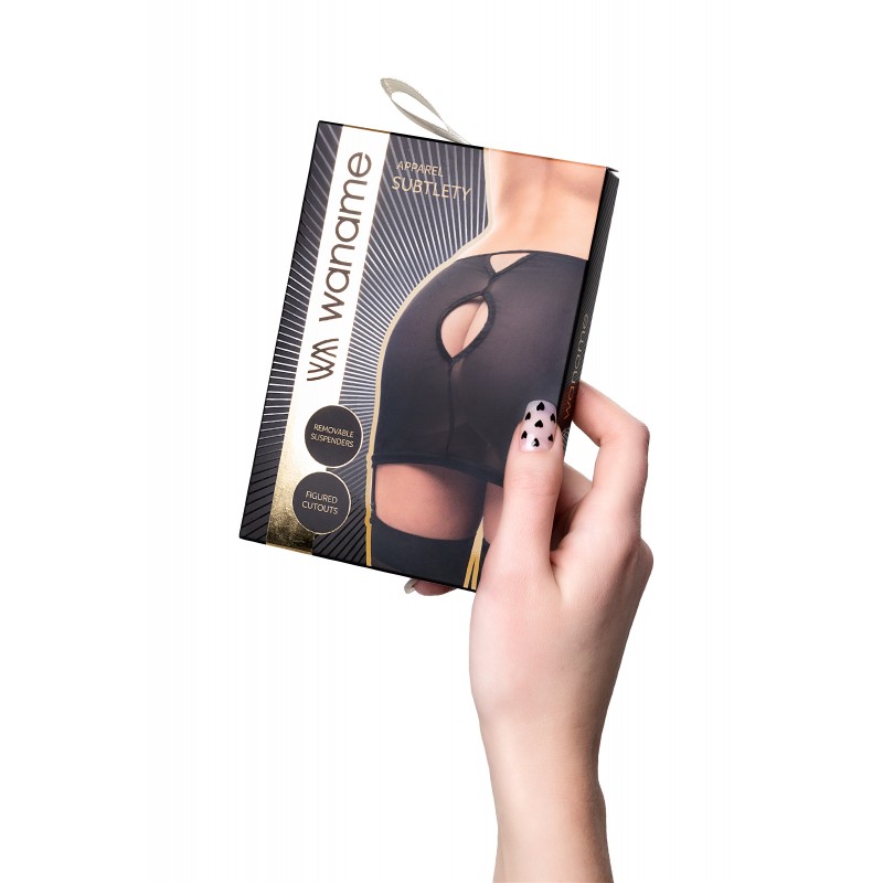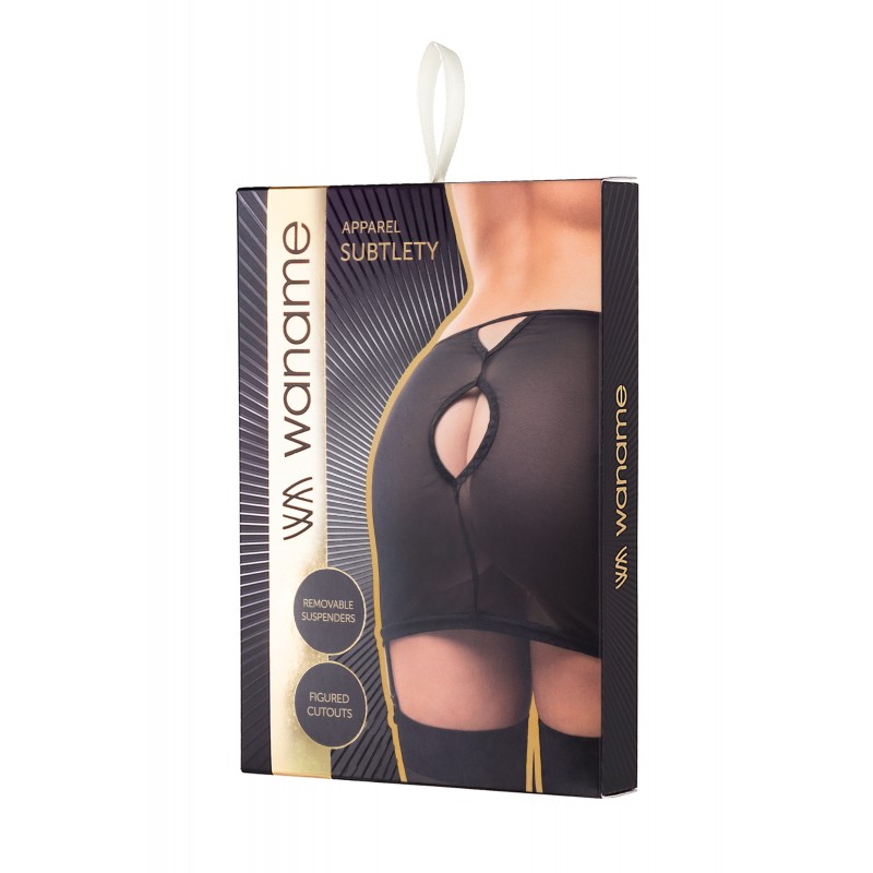 Линия провокационного эротического белья WANAME® Apparel – для женщин, которые хотят наслаждения и не скрывают этого. Юбка-пояс для чулок «Са́тэлти» (англ. Subtlety – «Тонкость») из тонкой прозрачной эластичной сетки облегает бедра, ощущается невесомой, не сковывают движений, но визуально меняет силуэт. Шелковистая поверхность материала дарит приятные ощущения при прикосновении. Современные элементы дизайна тешат женское самолюбие. Аккуратный вырез сзади приковывает внимание наблюдателя при каждом шаге. Провокационная длина слегка прикрывает ягодицы. Прозрачность ткани и съемные регулируемые пажи для чулок дополняют чувственный образ. Модели белья Waname® Apparel эксклюзивны, разработаны и произведены в России с учетом предпочтений российских покупательниц. *Чулки в комплект не входят. На фото и видео юбка-пояс Waname® Subtlety дополнена браллетом Waname® Delicacy.