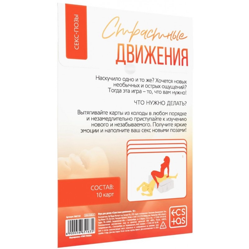 Получите яркие эмоции и обновите представления о сексе!Пришла пора дарить друг другу наслаждение!В набор входят 10 карт.Упаковка: пакет