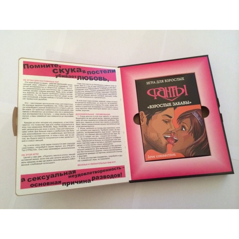 Эта игра рассчитана на людей совсем без комплексов или тех, кто хочет от них окончательно избавиться. Ее задача – дать вам возможность «поизвращаться», и она специально сделана такой. «Поизвращаться», конечно, условно, ведь в сексе вдвоем можно все. Чем меньше у вас останется запретного, и чем больше вы найдете изюминок в сексуальности друг друга, тем прочнее будут ваши отношения и тем жарче любовь. Не сомневайтесь это именно так. С этой ИГРОЙ вы: — найдете большие резервы в поиске ОСТРЫХ ОЩУЩЕНИЙ; — узнаете, что еще можно ВЫТВОРЯТЬ с помощью секс-игрушек; — убедитесь, что сексу не нужны границы ДОЗВОЛЕННОСТИ; — сможете заняться «принять участие в ГРУППОВИЧКЕ», оставаясь вдвоем. Игра включает 48 карточек-фантов с увлекательными и необычными игровыми заданиями. Самые «горячие» задания проиллюстрированы уникальными рисунками наиболее чувственных сексуальных поз, с объяснением их преимуществ и особенностей, ведь очень часто пресыщенность объясняется однообразием.