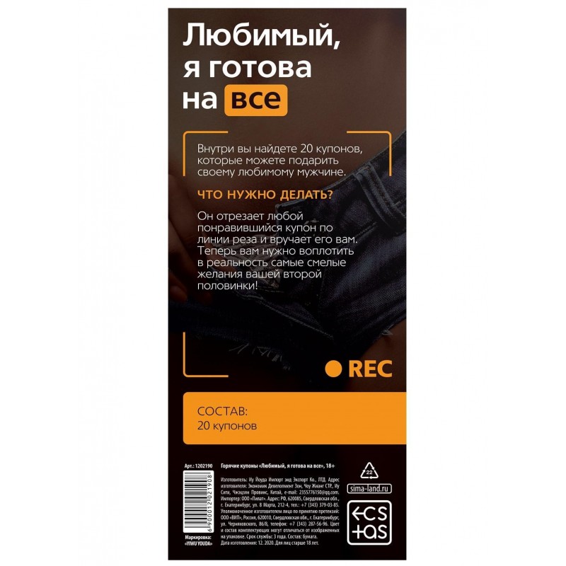Мечтаете удивить своего парня, но не знаете, как? Тогда горячие купоны «Любимый, я готова на всё» непременно придутся по вкусу вам и вашей половинке.