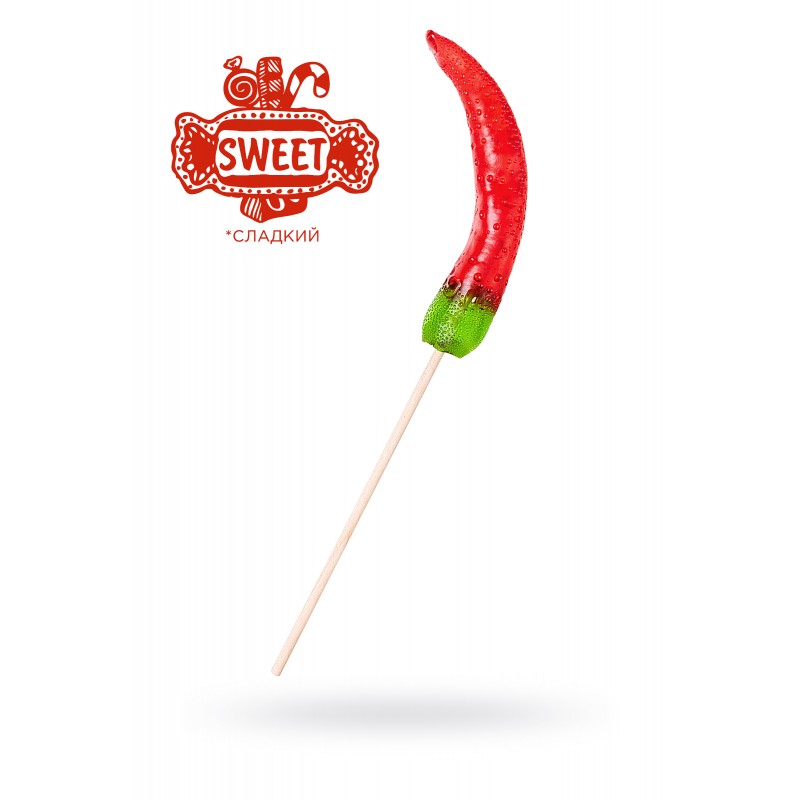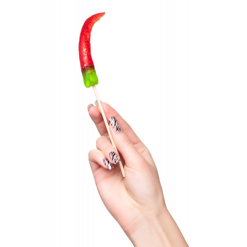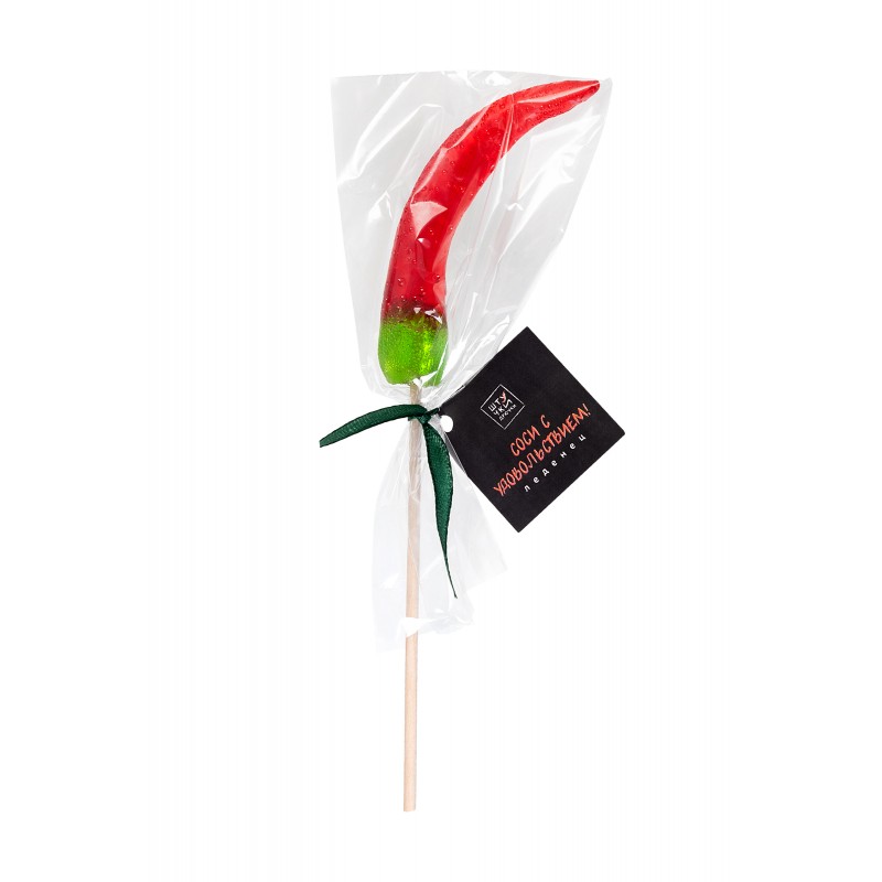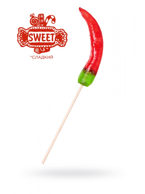Яркая и вкусная леденцовая карамель на палочке в форме перчика станет приятным дополнением подарка на любой из праздников!