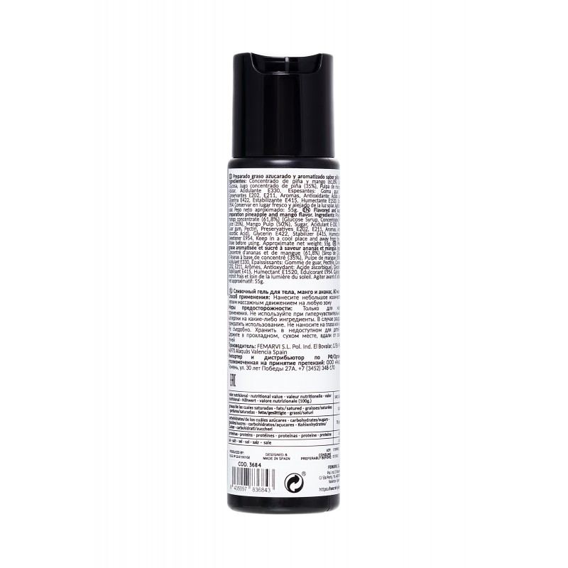 | Состав, ингредиенты | FLAVORED AND SUGARY FATTY PREPARATION MANGO AND PINEAPPLE FLAVORPINEAPPLE AND MANGO CONCENTRATE (61,8%) (GLUCOSE SYRUP, CONCENTRATED PINEAPPLE JUICE (35%), MANGO PULP (50%), SUGAR, ACIDULANT E-330, THICKENERS: GUAR GUM, PECTIN, PRESERVATIVES E202, E211, |