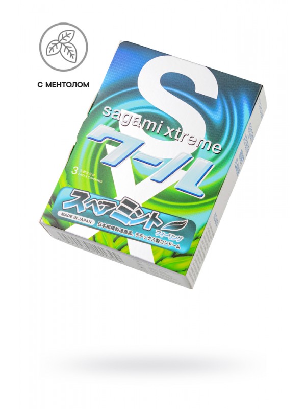 Презервативы Sagami, xtreme, Mint, латекс, 19 см, 5,2 см, 3 шт. код 759/1