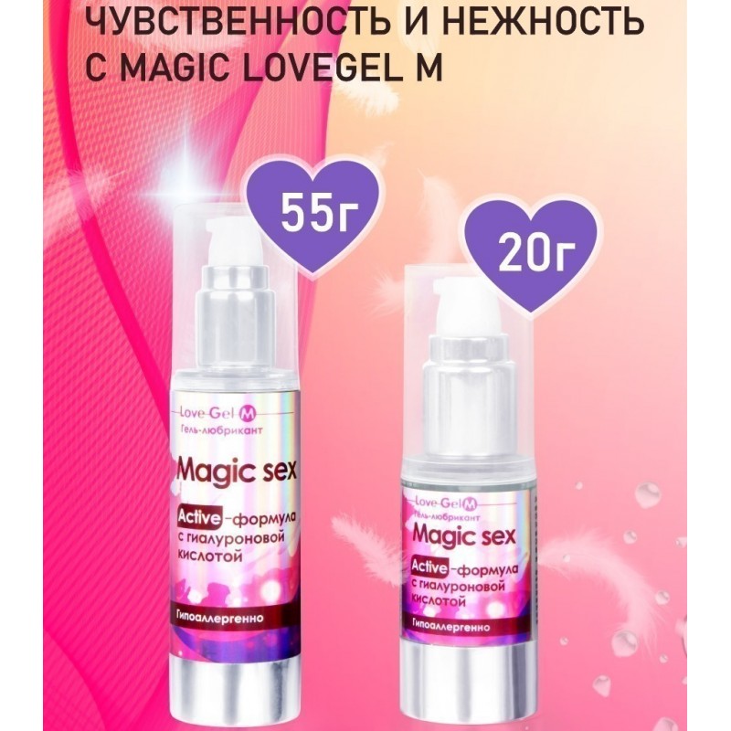 Гиалуроновая кислота способствует регенерации и дарит интенсивное увлажнение и мягкий уход.«Magic sex» - сказочное удовольствие и незабываемый восторг взаимного экстаза! Способ применения: перед половым контактом нанесите тонким слоем на интимную зону, требующую смазывания. Основа: водная