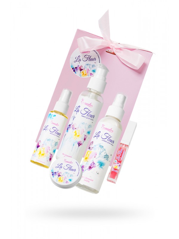 | Состав, ингредиенты | Вуаль для волос Eromantica «La fleur», 50 мл;Парфюмированный спрей для тела Eromantica «La fleur», 100 мл;Блеск для губ возбуждающий Eromantica «La fleur» со вкусом Pina colada, 10 мл;Ухаживающий мист для тела Eromantica «La fleur», 100 мл;Твердое мас |