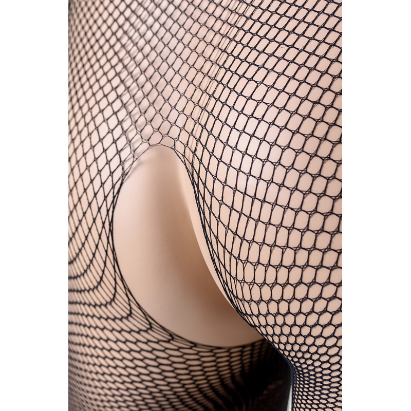 Комбинезон из мелкой сетки на все тело, с беззащитно открытыми плечами..