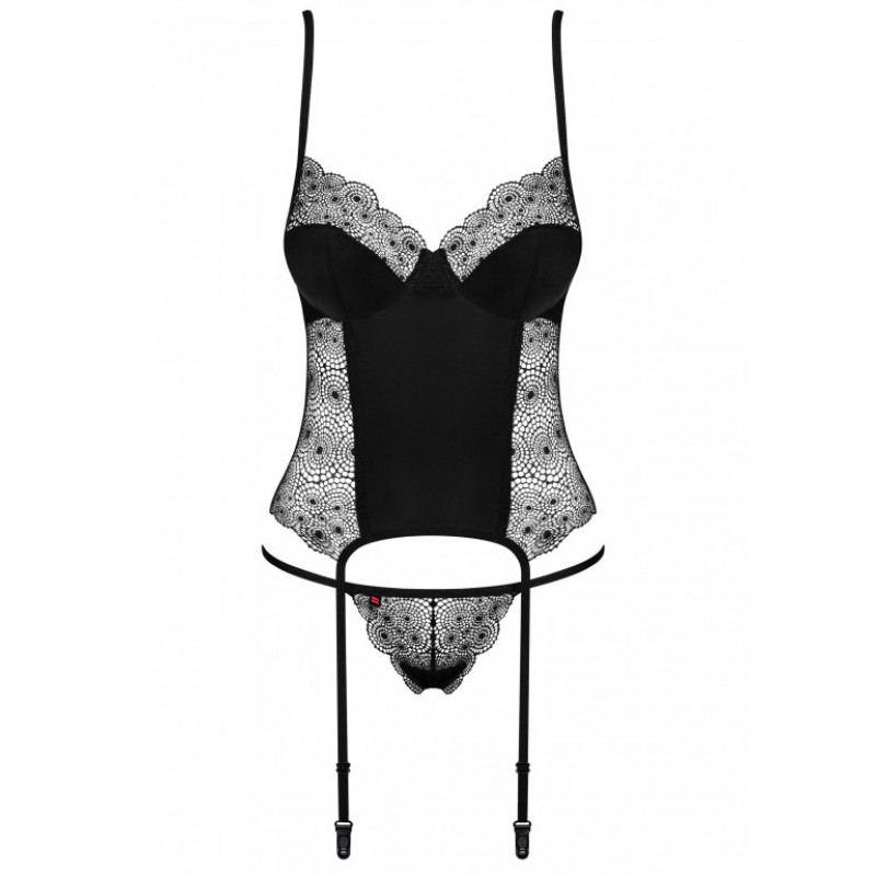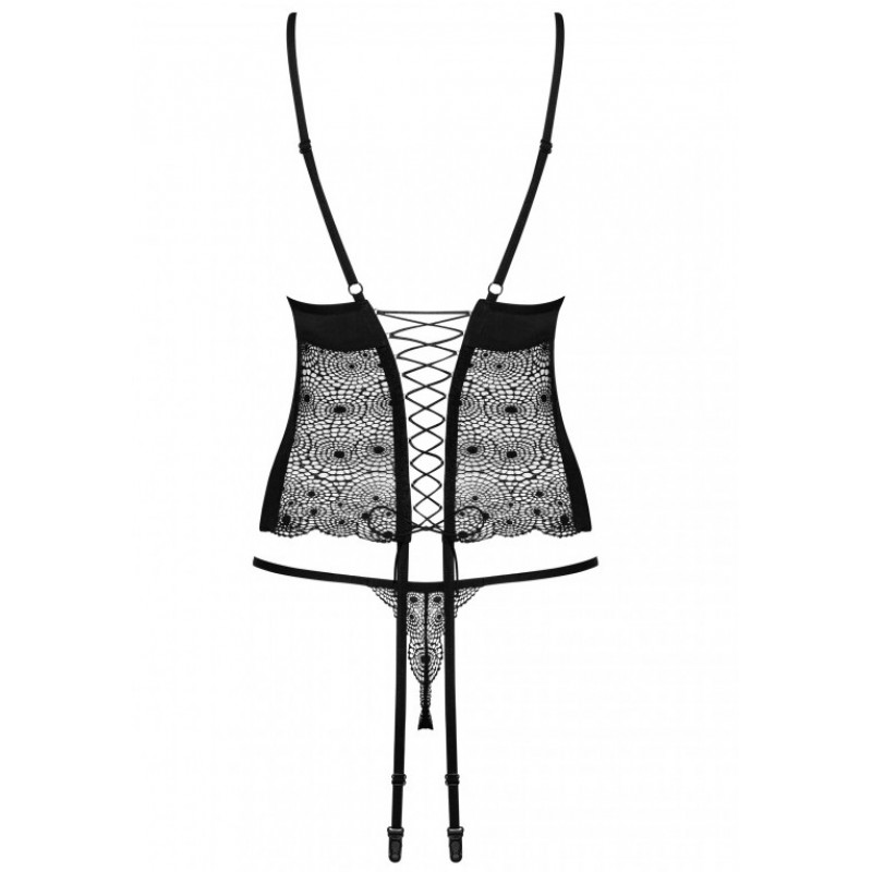 Черный корсет с кружевными вставками и трусиками-стрингами Sharlotte S/M код 886
