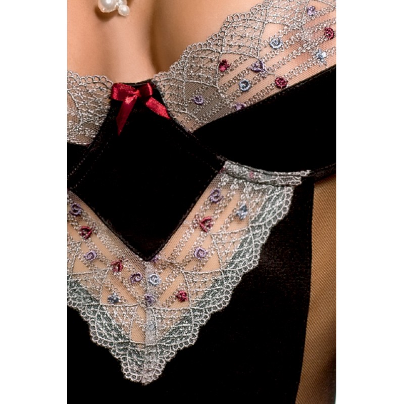 Элегантный корсет Marica выполнен из испанского сатина и украшен нежной вышивкой в мелкие розочки.Лиф на косточках и регулируемых бретелях декорирован кружевом и маленьким бантиком.Размер: L/XL