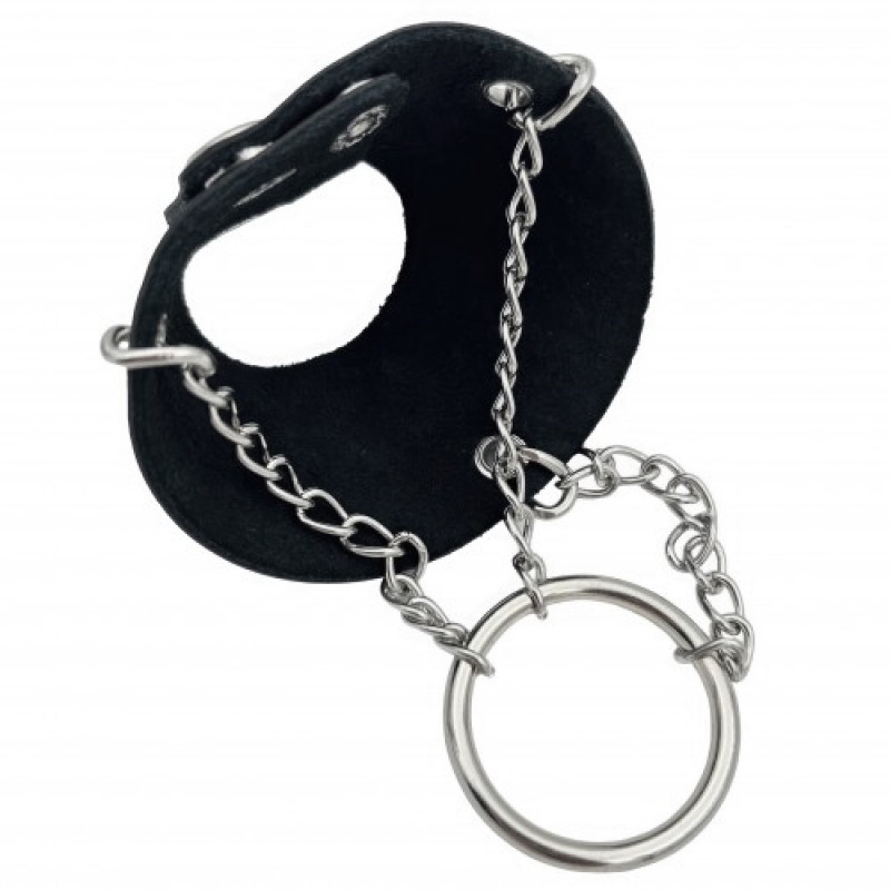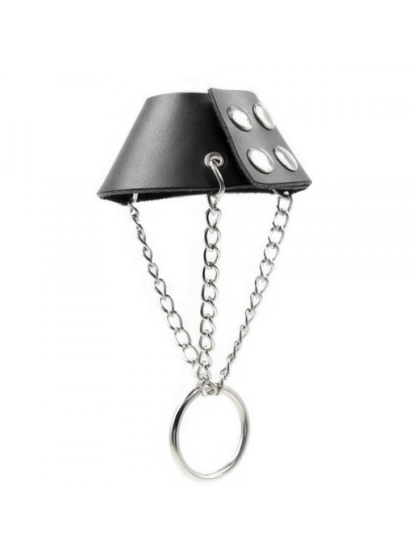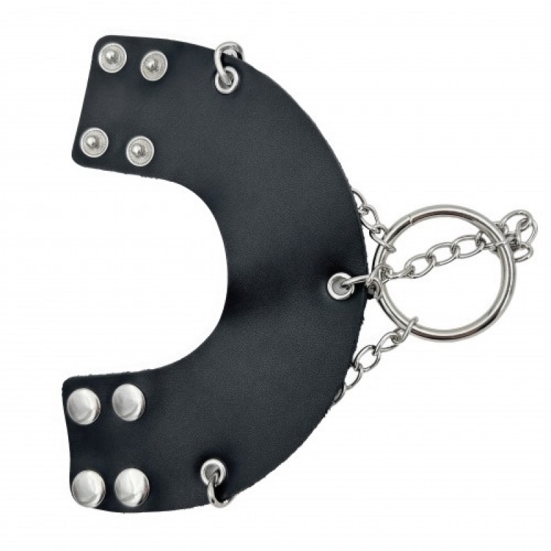 Цепочки крепятся к утяжке и соединяются внизу со специальным кольцом, на которое можно вешать дополнительные грузики, увеличивая напряжение на мошонку - кольцо удерживает грузики до 1,3 кг.Кожаная утяжка для мошонки отсрочит приближение кульминации и сделает оргазм ярче!