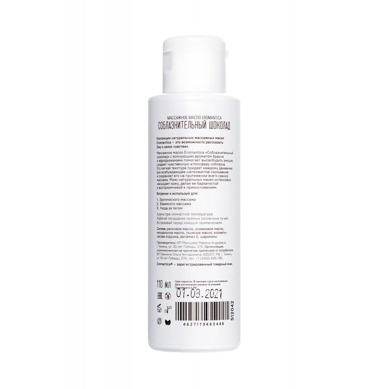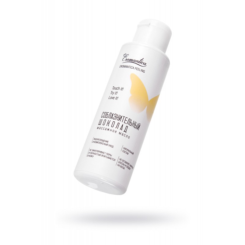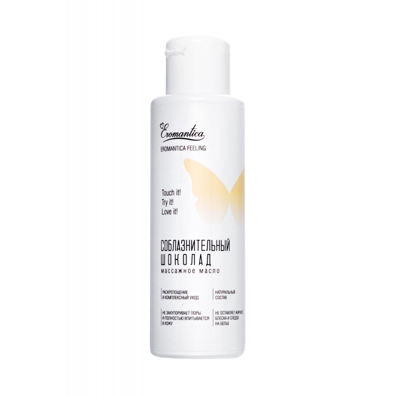 Массажное масло «Соблазнительный шоколад» с волнующим ароматом брауни и афродизиаками помогает высвободить эмоции и создает чувственную атмосферу соблазна.