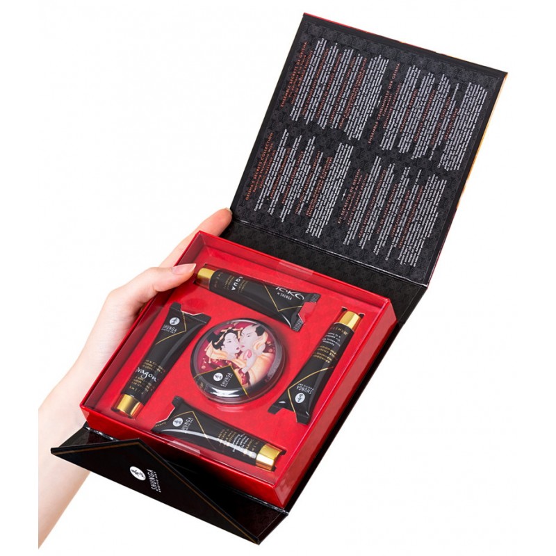 Набор косметики Geisha's Secret от компании Shunga станет великолепным подарком для уютного романтического вечера!В состав входят лучшие продукты марки: массажные масла, водный лубрикант и возбуждающий крем.