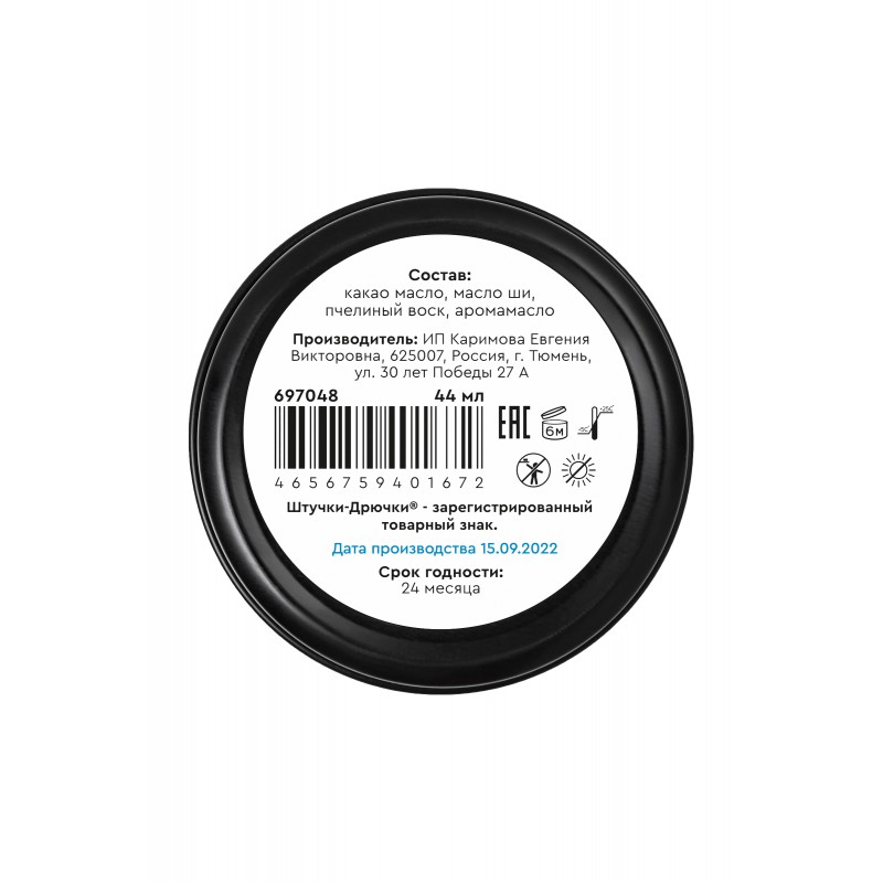 | Состав, ингредиенты | какао масло, масло ши, пчелиный воск, аромамасло. |