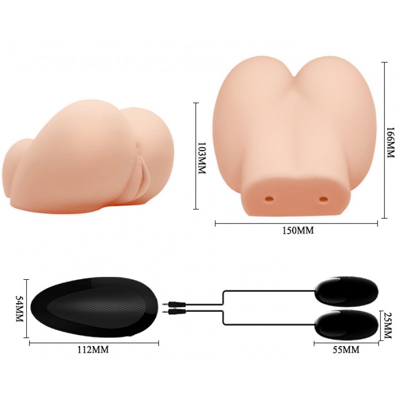 Две съемные вибропули управляются при помощи проводного пульта. Интенсивность вибрации регулируется колесиком на самом пульте.Отверстия для вибропуль находятся снизу, на дне игрушки. Мастурбатор достаточно легко промывать. После того, как вы промоете отверстия, игрушку рекомендуется хорошенько просушить и опудрить с помощью специальной пудры для игрушек. Благодаря этому изделие прослужит вам намного дольше.Мастурбатор работает от трех батареек типа ААА (в комплект НЕ входят!).Для более комфортного использования и сохранения качества материала рекомендуем использовать смазки только на водной основе.Размеры: общая длина 16,6 см, ширина 15 см, высота 10,5 см