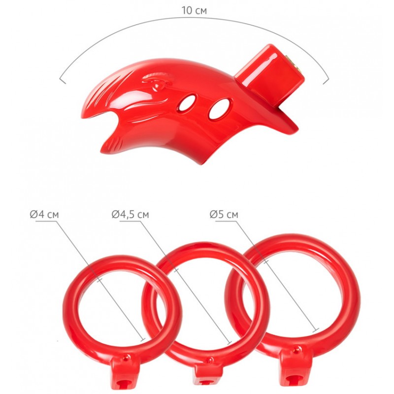 Комплектация: клетка для пениса, запорное кольцо 3 шт, замок с двумя ключами.Размеры: общая длина изделия 10 см, диаметр запорных колец 4 см, 4,5 см и 5 см