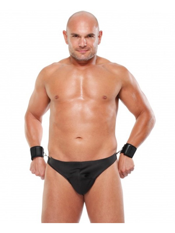 Черные мужские стринги с фиксаторами Fetish Bondage Thong XXL/XXXL код PD4739-09