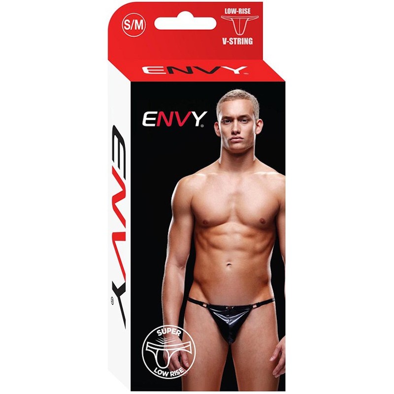 Глянцевые мужские V-стринги Envy черные S/M код E029-BLKSM